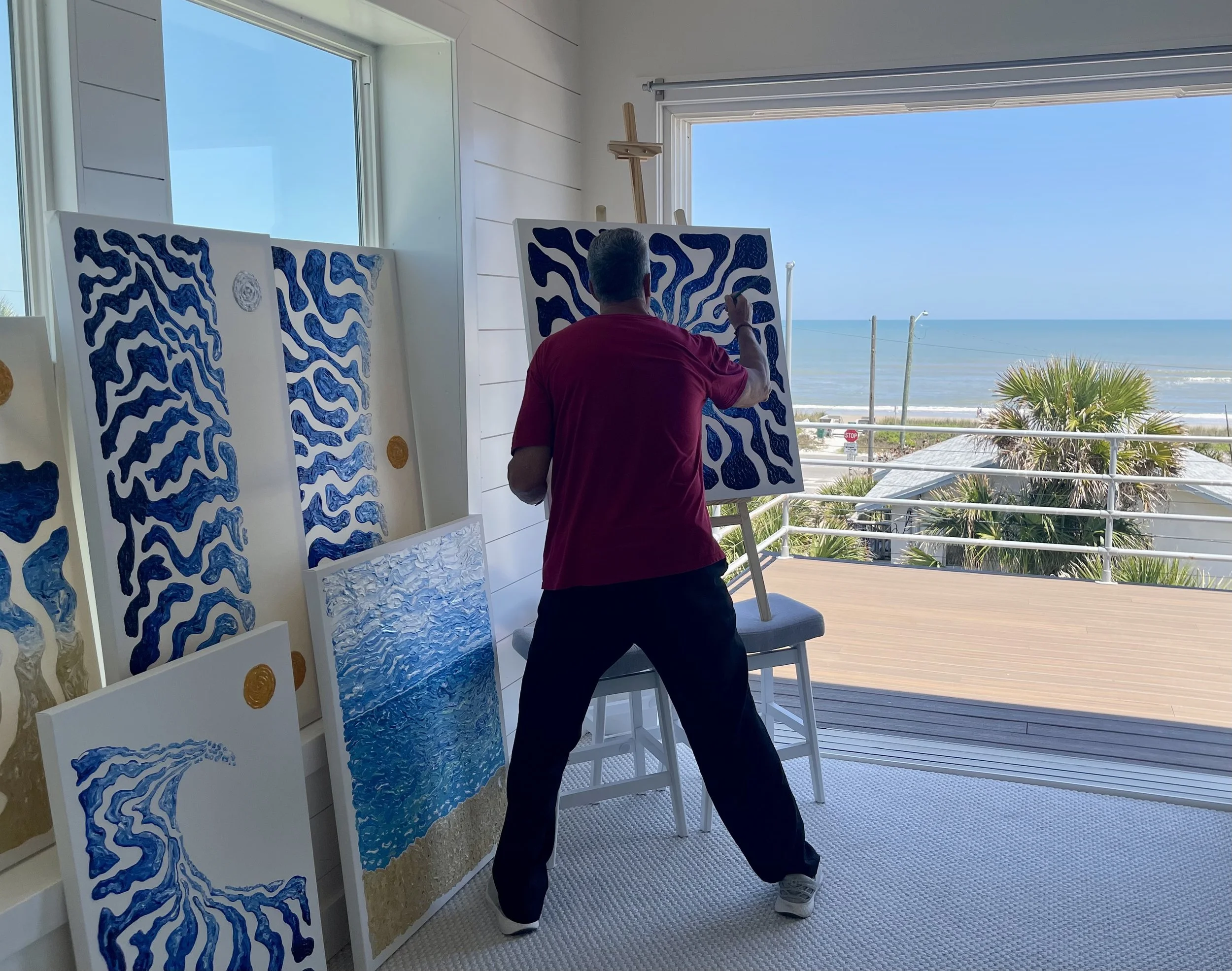 The Artist, know as Telly, is a former professional football player, and world traveler. Telly lives and works in a home studio that was self-designed and self-built in Northeast Florida. He created a space to work, relax, and enjoy life next to the Atlantic Ocean.